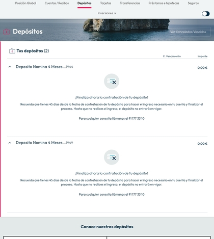 Vale ya me he informado bien puedes crear el depósito sin saldo lo confirma si se te quedan los 45 días para que hagas el depósito del dinero y automáticamente cuando esté ese dinero en cuenta se lo lleva directamente al depósito eso sí cuando haga la transferencia y esté en la cuenta necesita 24 horas más para confirmar el saldo Openbank y ya así que se lo llevan automáticamente al banco o sea que si registras ahora los depósitos que quieras y los contratas tienes 45 días para llevar el saldo. Luego los 900 euros es una transferencia que puedes hacer el día 1 de enero 1 de febrero y 1 de marzo y puede retirarlos la cuando quiera bueno lo dejas dos o tres días y lo retiras a tu cuenta de nuevo y ya está y luego no tiene mantenimiento ni coste la tarjeta de débito