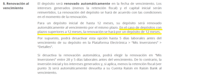 La siguiente imagen es de la hoja informativa antigua. En las nuevas no aparece lo subrayado. Confirmo que es así. Las renovaciones auto tienen límite de plazo de 1 año. Las renovaciones manuales no tienen límite.