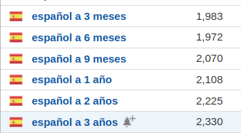 Respecto a la rentabilidad que ofrecen sus depósitos en Raisin, enlace inferior, es impresentable a 3 meses, 1 año, 2 años, 3 años y 4 años. Queda por debajo de lo que ofrece la deuda española en esos plazos o en niveles similares, como muestra la captura del mercado secundario hoy.