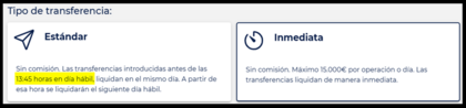 este banco es muy raro,en el PC, no me deja cambiar limites , sera por que los ha metido esta tarde la persona a la que he llamado y me decia que maximo normales 30.000 e inmediatas 15.000 con validez 72 horas . Pues bien, me he bajado la APP, que no la tenia instalada y me deja cambiar las cifras que quiera, la inmediata me deja poner 30.000 , no he probado con mas y la normal 40.000, no he probado mas.