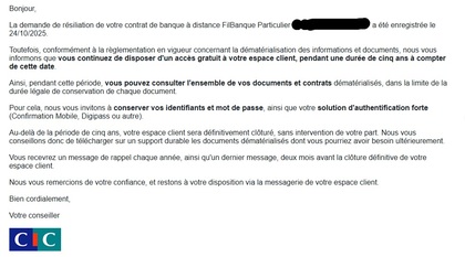 La solicitud de cancelación de su contrato de banca a distancia FilBanque Particulier ha sido registrada el 24/10/2025.
