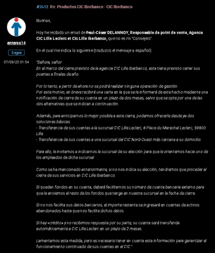 ¿De aquel email diciendo que la agencia CIC-Iberbanco cerraba y pasaban a los clientes al banco CIC Nord-Ouest se sabe algo nuevo?