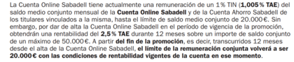 Sí, tienes la cuenta online y la de ahorro y Saba te remunera el 2,5% del saldo medio conjunto de ambas hasta la suma de 50k.