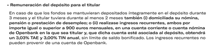 Buenas tardes una duda sobre el depósito a 3 meses de Openbank,en la condiciones pone que para que te den el 3 % de interés tienes que tener ingresos recurrentes de 900 durante al menos 2 meses pero lo que no se si esos dos ingresos recurrentes tienen que ser durante el depósito o antes del depósito ya tienes que haber tenido esos dos ingresos porque más que nada puede quedar sujeto a la interpretación del banco y luego nos llevamos la sorpresa.Lo digo porque pone la palabra "tuviera"