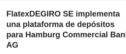 FlatexDEGIRO SE ha desarrollado e implementado una plataforma de depósitos totalmente integrada para Hamburg Commercial Bank AG. Bajo la nueva marca digital Hamburg Direct Bank, Hamburg Commercial Bank AG ofrece ahora productos de depósito a la vista y a plazo fijo a través de esta nueva plataforma en línea. Con la solución de externalización bancaria y tecnológica de flatexDEGIRO, las entidades financieras pueden captar depósitos minoristas de manera eficiente sin necesidad de establecer su propia infraestructura informática compleja, equipos especializados o extensos procesos regulatorios.