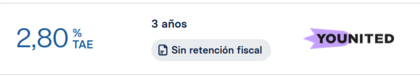Comparando los TAEs, el 2,80% de Younited, el máximo que ofrece la plataforma a ese plazo, tampoco es una maravilla.