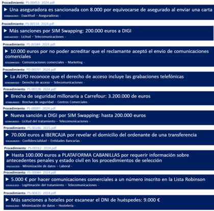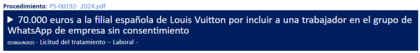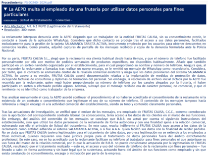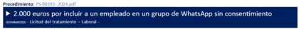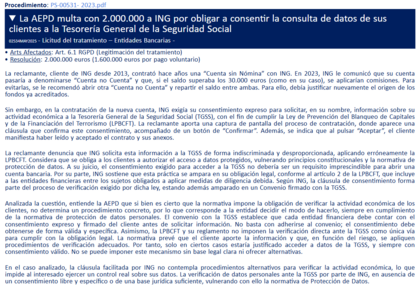 Otra Resolución de la AEPD de mayo 2025 (aunque los hechos datan de 2023) acabó en multita de ná, dos millones de euros, a los INGratos: (supongo que esto ya lo tendrán totalmente subsanado) Y otra, en fin, a un empleado de una frutería 🍎🍉🍌de Salamanca por enviar WhatsApp a una clienta sin contar con su previo consentimiento expreso. Fue simbólica la sanción, 300 €, pero le cayó... Relacionado también con WhatsApp (solo lo titulares, sin sinopsis o resumen): Un puñado más, y de lo más variopinto: