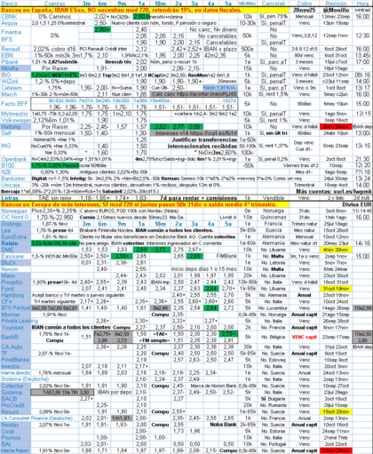 También en depos en el extranjero los intereses han bajado porque sus inflaciones son más bajas, si vas a raisin verás que te ofrecen como mucho un 2,7 o 2,8%, lo que con sus inflaciones no es para tirar cohetes pero no está tan mal, pero claro, si eres español necesitas un 3,8%.