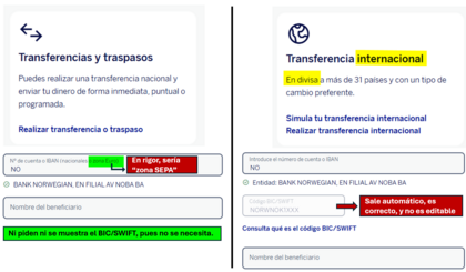 Entrando por transferencias internacional hay que poner EUR (por defecto sale NOK) aunque el BIC sale auto si es SEPA.
