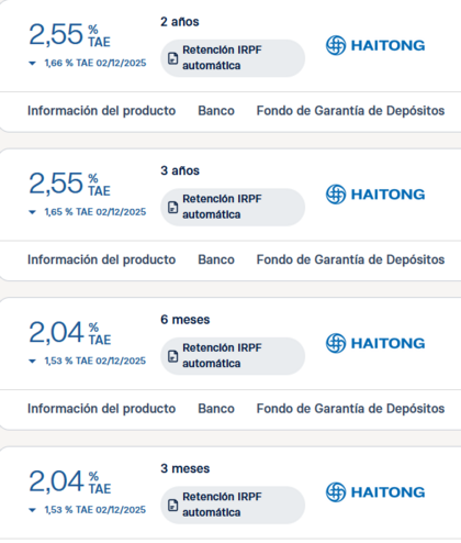 A partir del 2 de diciembre pegan un hachazo importante a casi todos sus depósitos, en especial el de 2 y 3 años que bajan un 0,89% y un 0,90% 🥶