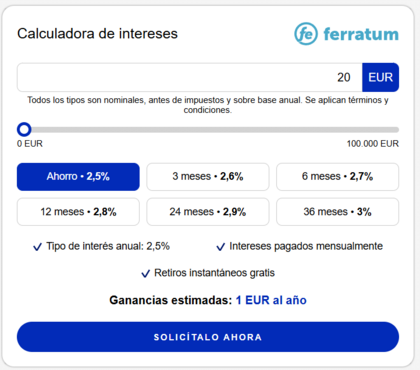 - Importe mínimo: Desde solo 50 euros, lo que lo hace accesible para pequeños ahorradores.