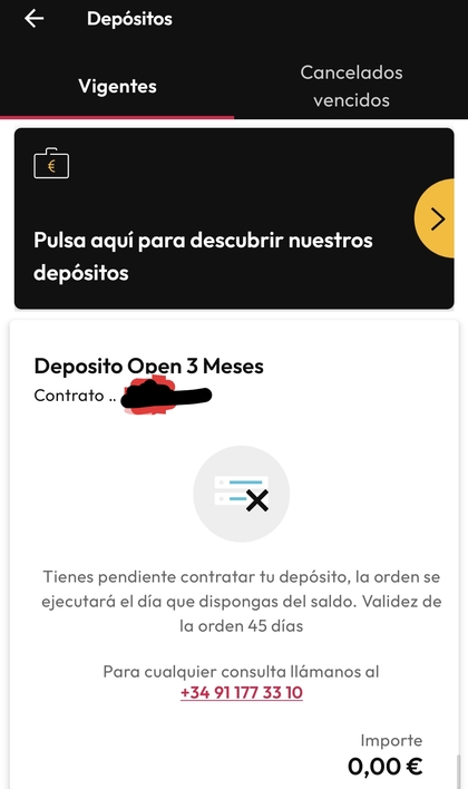 Accedo a la sección documentos y no aparece el contrato,pero accedo a mis productos y aparece contrato del depósito con los últimos números visibles pero ni rastro del PDF para poder descargarlo y poder ver la cantidad contratada etc.