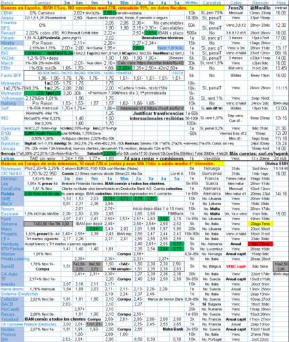 Muchas bajadas programadas en Raisin, lo más destacado siendo TF cuenta de ahorro. SME tampoco va a tardar en bajar el depo a un año porque se ha quedado sin competencia.