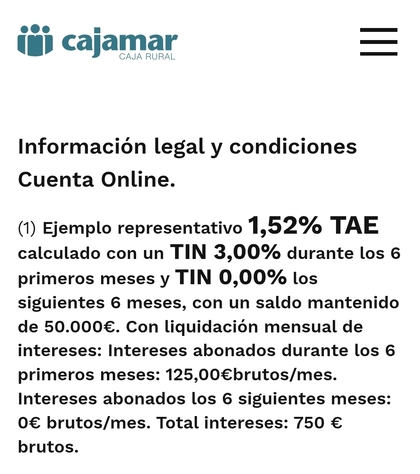 Aquí algunos hablan de wefferent de cajamal a 6 meses 3%, pero no veo nada de esto en la web, no se