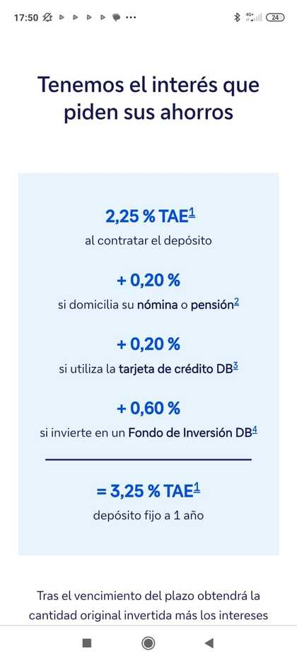 D. Bank , mejora su deposito creciente , hasta el 3,25 % , empezando desde el 2.25 % No lo veo mala opcion , para el que busca oficina fisica