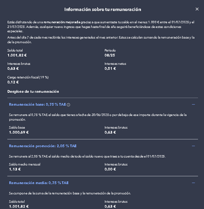 Ya aparece el detalle de la remuneración para el periodo 08/25. Los cálculos cuadran con los míos y efectivamente me han ingresado 1 céntimo de más en el bruto están derrochadores xD