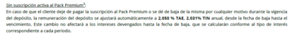 Por tanto, obliga a tener suscripción activa para cobrar la totalidad del %TAE contratado, pero el periodo sin suscripción activa y con depósito premium activo se remunera al tipo vigente (mientras se tenga premium contratado remunera al tipo del depósito contratado, ahora el 4% para 1 mes).