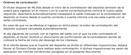 Con las actuales condiciones puedes contratar el depósito al 2,75% por plazo de 4 meses en OPBK y tienes 45 días para llevar el dinero, por lo que lo puedes contratar antes del 9 de diciembre y llevar el dinero hasta 45 días después.