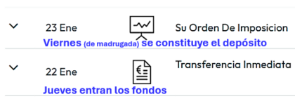 Opción diferente es que, si el viernes no se ha constituido, también podrías optar por transferirlo hacia otra entidad, a otra cuenta que tengas remunerada, y traértelo de vuelta después del fin de semana.