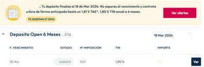 - Otro que me vence el 24 de febrero de los de 4 meses al 2'75%, pero tanto insistir por correo le di a renovar al 2% 6 MESES.
