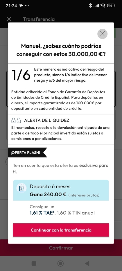 A mí me ha vencido un depósito esta mañana y cuando tenía casi todo sacado me ha salido "hay un problema".