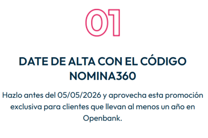 Por otra parte, me ha llegado un mail de que dan 360E por llevar la nómina... Imagino que OB se bebe los tintos bien no? En Junio me vence la promo de VVBA y lo mismo la cogemos... He visto que es para clientes con más de 1 año en OB...