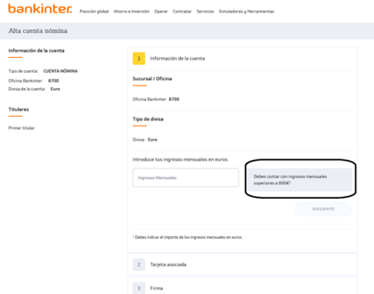 Abrí la cuenta en Febrero 25 y deje el trabajo en Enero 25. Actualmente estoy cobrando prestación por desempleo, con lo cual no tengo nómina y voy a base de tintos.