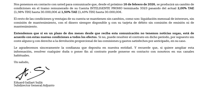Yo recibí correo creo que a mediados de diciembre diciendo que había comunicado importante en la documentación web y, efectivamente, me informaba que bajaba al 1,5% TAE en dos meses, si no recuerdo mal. Bankinter suele ocultar mucho sus comunicados. Pero ya te digo yo que es así PARA TODOS los antiguos clientes EVO, y eso que habían dicho que mantendrían las condiciones