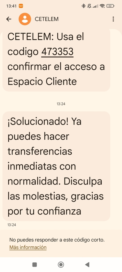 Hace una hora he recibido un SMS de Cetelem avisandome que ya podía hacer las inmediatas con normalidad (en  ningún momento me dijeron que no pudiera hacerlas).