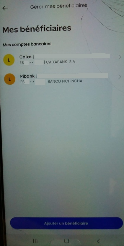 "Principal, Virements, Gérer mes bénéficiaires, Ajouter un béneficiaire,