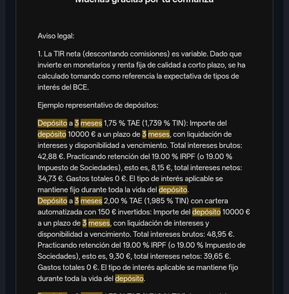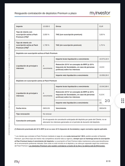 En la información precontractual del depósito a 3 meses, vigente desde el 11 de noviembre de 2025, hasta (de momento) el 30 de abril de 2026: