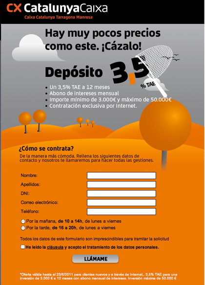 Hoy he acudido a una oficina de CatalunyaCaixa y me han dicho que se podía contratar el siguiente depósito vía Internet: