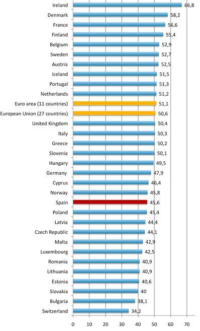 el tamaño del Estado español quedaría reducido a niveles solo comparables, en la UE, al de los países de Europa del Este."