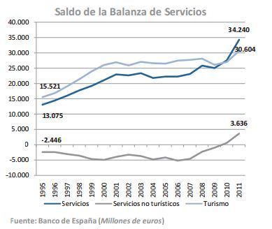 - Los ingresos por servicios no turísticos se han incrementado en un 350% desde 1996, lo que ha permitido que alcancen un superavit desde 2010.