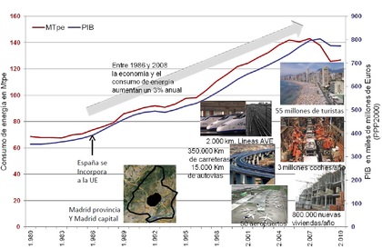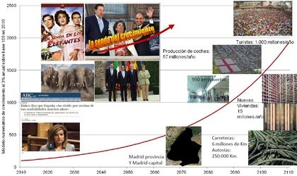 De una presentación de Pedro Prieto, si extrapolamos el crecimiento del PIB en España del 3% de los últimos decenios: