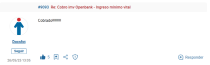 Re: Cobro imv Openbank - Ingreso mínimo vital