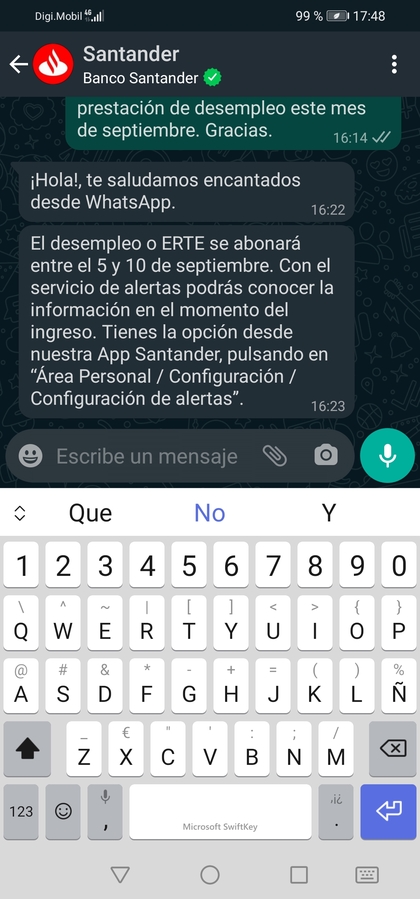 Buenos días. A continuación adjunto captura pantalla, chat con Open Bank (Santander). Estoy viendo otra fecha prevista por Santander. Así que hay contradicción.