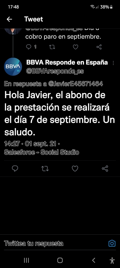 BBVA tampoco saben nada dicen que en principio este mes ya es el día 10