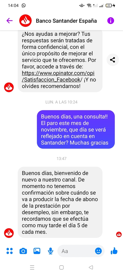 #1 Paro Santander Noviembre Calebao97 Seguir 02/11/21 14:05 Buenos días, se ve que de momento no saben que día ingresaran el paro en Santander.. algun mes lo habéis cobrado antes del día 5 o después? A ver si tenemos suerte y lo ingresan cuanto antes. Responder