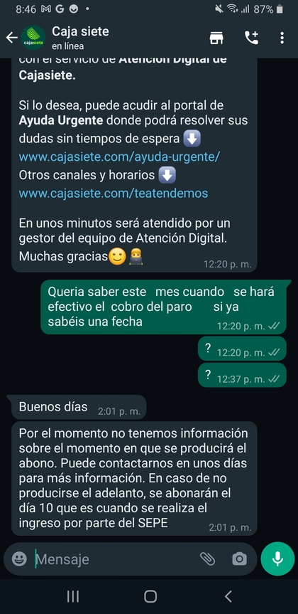 Caja rural me doce a mi que el día 10 y el mes pasado me dijeron lo mismo y cobre el 5 creo así que no me fio de nada parece que les gusta hacer sufrir que not tienen información me dijeron de que se adelante que lo espere para el día 10 esa respuesta e recibido