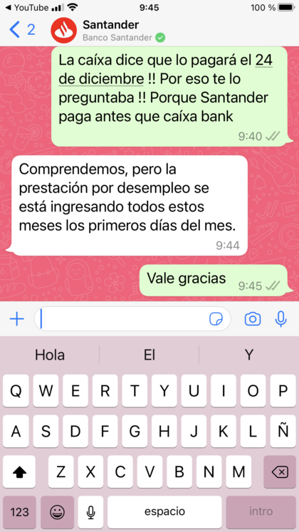 Captura de pantalla de lo que me contestó Santander !! Dicen esto