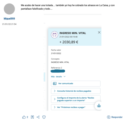En todo el foro: Osmosis: Caja de Ingenieros y Tony42: La Caixa. Son los dos afortunados que han cobrado atrasos. Yo también he cobrado atraso en La Caixa, el 21 y subo pantallazo falsificado. En fin... lo que queda claro; es que solo cuando hay un volumen de gente suficiente que dice lo mismo, se puede empezar a creer algo por aquí....