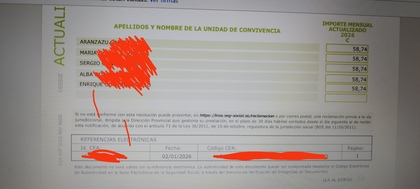 @sonia04 Hola cuanto tiempo sin escribir por aquí aunque de vez en cuando os leo porque me surgen dudas que ya habéis resuelto a otras personas,la cosa es que tengo un lío tremendo porque yo no cobro imv como tal si no solo el complemento de ayuda a la infancia desde hace un par de años ya que nosotros por nuestros ingresos,que son bastante irregulares por trabajos temporales,no tenemos derecho al imv, pero si al cai,el pasado año en mayo nos subieron unos 100 euros que luego en octubre nos lo quitaron y seguimos cobrando el cai ,pero mi sorpresa ha llegado en enero que cobramos más y no entendí nada y ahora que me ha llegado la carta casi entiendo menos porque me pone que cobramos de ingreso mínimo vital 58,74 por persona,que somos 3 niños y 2 adultos y hace un total de 293,70 que es lo que nos han ingresado ahora en enero pero si nos corresponde eso de imv cuando cómo digo ni siquiera lo cobrábamos antes y sólo me han ingresado eso ,no me han ingresado el cai verdad?? Porque yo cobraba 195,50 por una de 4 80,50, uno de 10 y otra de 17 57,50 por cada uno y eso ni tan s quiera me viene reflejado en la carta No me quería extender mucho pero creo que lo he explicado bien, muchas gracias de antemano 😊