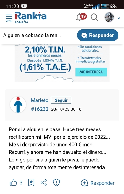 Voy a ir a mi asistente en el teléfono 020 me han dicho que es por qué han comparado los ingresos de la hacienda...pero mi situación es un calco de la del año pasado duermo donde puedo y como lo que puedo con lo que me queda ...en fin y si como cada vez que pagan hacen lo que quieren está vez era el ingreso de la Renta Valenciana ....total 400 euros menos ...