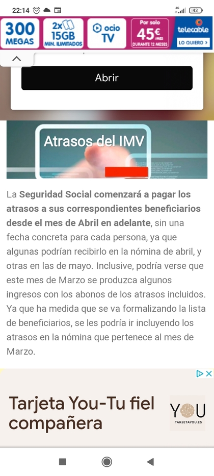 #1 Atrasos - Ingreso mínimo vital Jessimaria Seguir 23/03/22 22:44 Espero que os aya servido de algo lo ke subí hay tenéis todo sobre los atrasos Responder