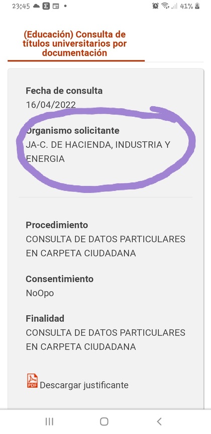 No es raro que la Consejería de Hacienda, Industria y Energía consulte los títulos universitarios, solo lo hacen con fines estadísticos. suelen consultarlos cada 2 años.