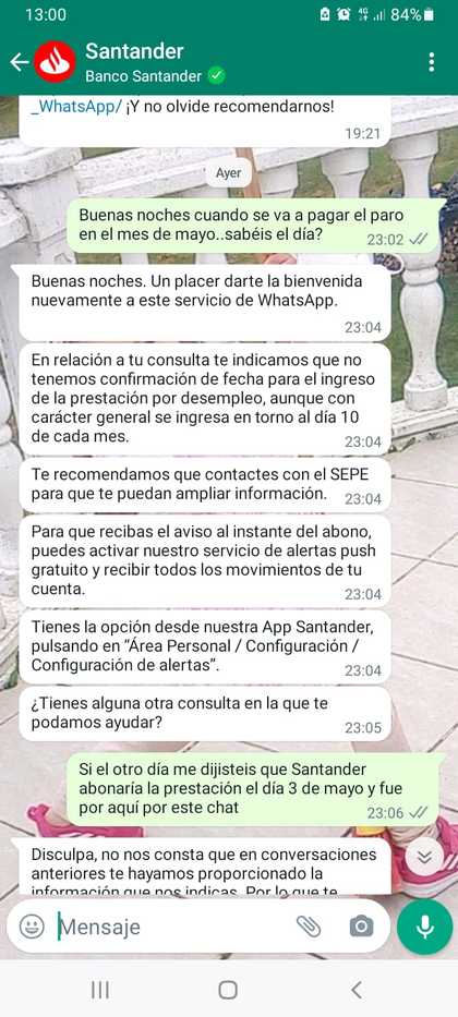 Estamos a día 1 de mayo e ING me acaba de contestar esto.