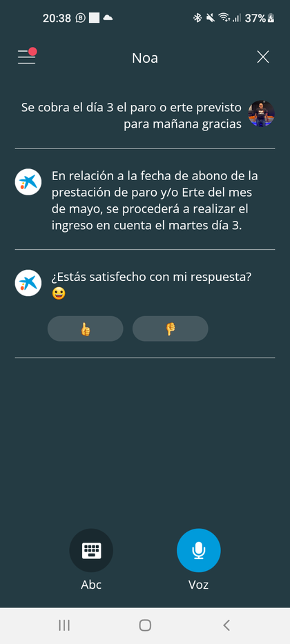 #26 Re: Cobro paro CaixaBank Ver mensaje de Adter Cyril Seguir 02/05/22 21:43 Con la operadora Responder