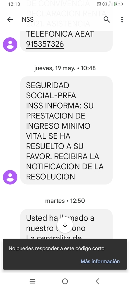 #19 Re: Pregunta porfavor - Ingreso mínimo vital Ver mensaje de Jenni1991 Top 100 ritekg5 Seguir 26/05/22 12:31 Lo que cuenta de verdad es la notificación telemática o carta certificada, el SMS es solo informativo... 1 Responder