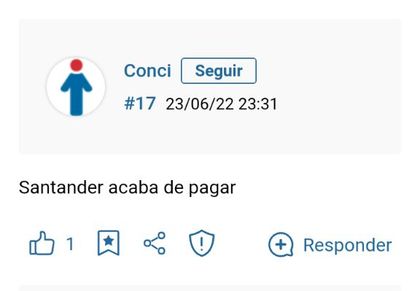 Esto es de este mes de un hilo. Santander ha pagado el 23 de junio.